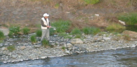 昼頃になると調子もよくなったので、金目川にコイ釣りに行きました。