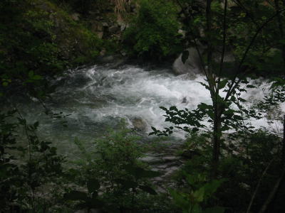 | 帰りの林道で、フライロッドを持ったカップルとすれ違いました。 すれ違った後に振り返って写真を撮りました。 なぜかというと、 にこやかに挨拶した女性はすごくきれい。 ちょっとストーカーっぽいか? |
