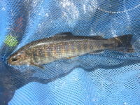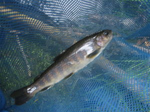 金峰山川の道を確認した後、夕方千曲川本流を釣ってみましたが、雨のせいで少しにごりが入り、イワナの稚魚が1匹釣れたのみでした。