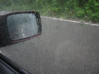 車に戻ると雨が降ってきました。朝からぱらついていたのですが、これは本降りです。