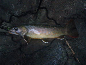 がんがん釣れるわけではないですが、いい型のイワナがかかります。