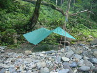 そうめんを食べていると雨が降り始めました。釣り道具をしまってテン場に戻ります。