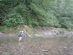 しかしそのあとの林道は歩きやすく、3時間半ほどで入渓点にたどり着きました。