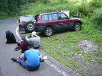さらに1時間ほど走ると谷間に川が見えてきました。目的のO川です。ほどなく林道の車止めゲートに到着。