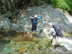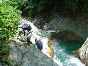 途中で上流の沢から入ってきたグループや、後ろから追いついてきたグループに会いましたが、三井さんがうまく調整してくれました。