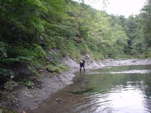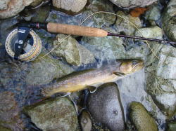 そこで三井さんに断わって、50メートルほど川を下り(上流に行くには高巻きが必要なので)、イワナを狙うことにしました。