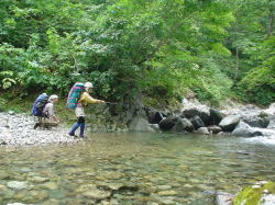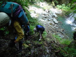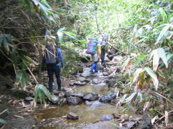 渓流をどんどん登って行き、源流部、つまり川の水がなくなるところまで詰め、そこからさらに上を目指し、稜線の登山道に出て下山するというツアーでした。