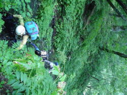 3時間ほど行くと本格的な藪沢になりました。水はめっきり減りました。