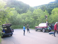三井さんの車で下山予定地近くに移動し、道端にテントを張って仮眠。