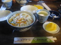幸太郎さんお奨めの松尾食堂でたまご丼を摂取。だしがたっぷりしていておいしい丼です。