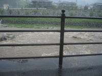 2時間ほどでそこを出たのですが、驚いたことに道路沿いの川が濁流と化しています。