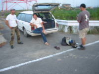 さて、おいしいものを食べようと、高太郎さんがはりきって車を出してくれましたが、台風のため市内の多くの店がお休みです。