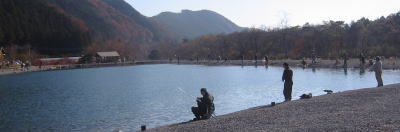 私も空いている所を見つけて釣り始めます。3匹ほど捕まえたのですが、しばらくするとあたりが止まってしまいました。