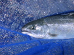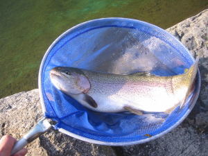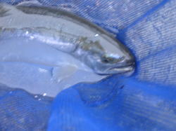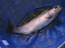 朝一にきた巨大ニジマス。