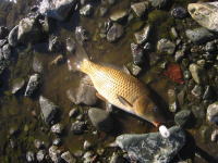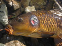 でもそのうちの1匹は両方のえらのところに大きな腫瘍のようなものができていた。コイヘルペスか?