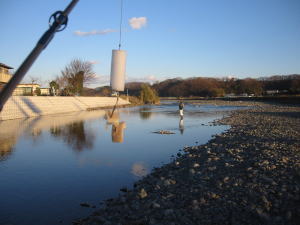 改めて仕掛けをセットし、サシで釣り始めるがあたりなし。しばらくすると近くにフライマンが現れてオイカワのライズを狙い始めた。