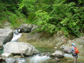 少し本流筋を歩き、往きに下りてきた沢に入る。