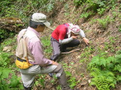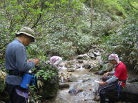 テン場に戻ってから今度はワサビを採りに行くことにした。KYさん、IHさんに連れていってもらう。