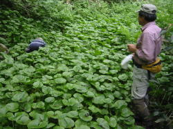3人で熱心に採る。さながらワサビ畑を荒らしに来たイノシシの群れのようである。
