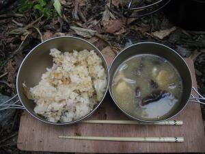 | イワナごはんとイワナ汁。 ナラタケ入り! |
