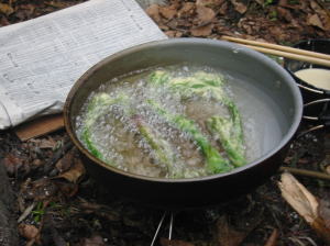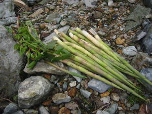 ネマガリダケはペンション風来坊で食事に出るし、釣りをしていてネマガリダケ採りの人に会うこともある。