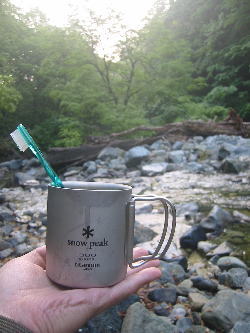 あまりよく眠れなかったが死ぬことはない。タープの下から這い出し歯を磨く。