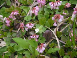 藪の中をがさがさ歩いていくとワサビがあった。雑草のようにびっしりと生えている。