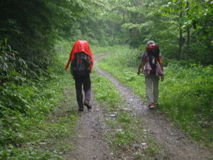 いやな予感は的中し、沢を登っただけで体力の限界。山道の方は半死半生となりながら転げ落ち、やっと林道のゲートにたどり着くことができた。