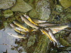 ある淵では、何匹か泳いでいる中から一番大きいのを選んでフライを投げて釣る、などという贅沢なことをする。