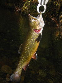 とフライをキャストする。するとイワナがすっと寄ってきてばくっと喰らいついた。