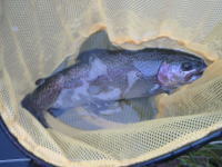 首尾よくおいしそうなニジマスを獲得。