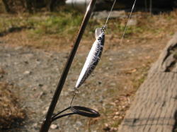 一度などは、魚がかかったので思い切り合わせたところ、魚が一瞬間をおいてルアーを放した。ルアーがびゅーっと私の方に飛んできて顔面直撃!