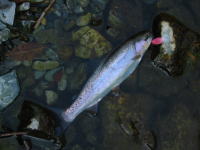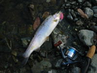 YGLへ行く。釣り初めである。今日もルアーフィッシングだ。 駐車場につくと何やらちらほら舞っている。雪だ。雪はすぐに止んだが寒い一日だった。 午前中はわずかに2匹。午後からはぽつぽつ。 陽が射して暖かくなると、少し大きめの黒いユスリカのハッチがあり、ヤマメが時々ライズしていた。 でもあんまり釣れていないようで、午後3時にはほとんどの客がいなくなった。 私も身体が冷えたので午後4時に終了。 今年も良い釣りができますように。