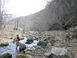 さて、時期的にはまだ春先で、普通なら本流でライズ待ちの釣りなのだけれど、いでけんさんがここのところ本流があまりよろしくないと言うので、支流に行くことになった。