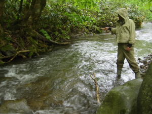 タケノコ採りの人が多い。釣り人の車も数台あったが、うまい具合に空いていた入渓点に入れた。