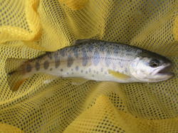 ヤマメの稚魚を1匹釣って朝食。