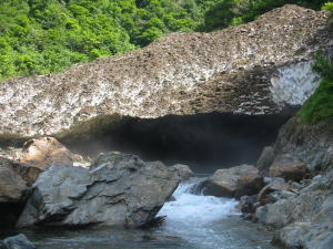 私を威嚇するようにしゅうしゅうと煙を吐いている。巻けないこともなさそうだったが、一人では危険だろうと判断し、この沢はあきらめて引き返すことにした。