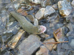 かなり上流で小さなイワナをやっと釣ったが、もはや飲み水もなくなり午前の釣りは終了した。