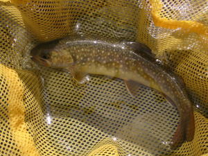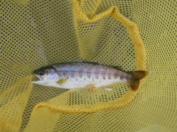 小さなイワナ数匹とヤマメを1匹釣る。大きな魚はじっとしているようである。