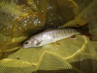 今回はどうかなと期待したが、結果的には下流部でヤマメ1匹のみ。人が入っていたようである。がんばってみたが夕方になって急に気温が下がり、夕食の時間にもなったので今日は終了。