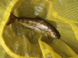 あきらめてとなりのG川に移動。ここではイワナを1匹釣るも他の魚の反応は皆無。雨が相当効いたようである。