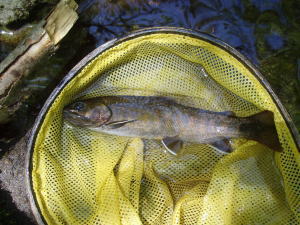 まず最初に行ったのはT沢。ここはたいへんきれいな流れでかつ釣りやすい。久しぶりにフライフィッシングをする私にもイワナが3匹ほど釣れた。