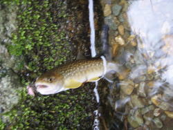 結局、1時間もやらない間に5〜6匹釣ることができた。かからなかった魚もそれ以上にいた。ヤマメも釣れたし、まあまあいい型のイワナも釣れた。