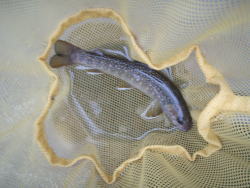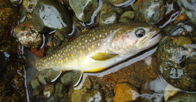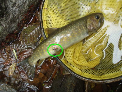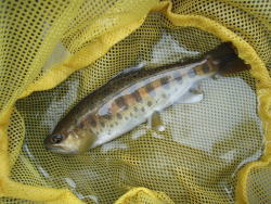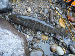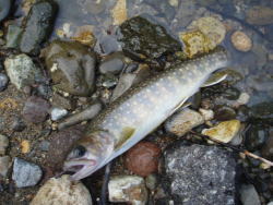 きれいなイワナの横っ腹にフライがしっかり刺さっていた。