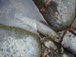 一美さんがすぐに2匹釣ったので、これは期待できると思ったのだが後が続かない。首を傾げつつ遡行すると理由がわかった。