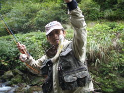 この後、狙った岩陰から小さいながらお腹がオレンジ色のきれいなイワナを釣り、今年の渓流釣りを終了した。
