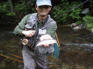 あきらめかけた時に一美さんがヤマメを釣る。さすが。続けて私にもでかいのが来たが、あっさり逃がしてしまう。悲しいくらい予定どおりである。