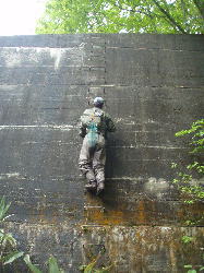 K沢をあきらめて近くのN川へ行ってみると、こっちは沢登りの集団。サワノボラーは釣り師の敵(喜)。