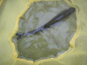 しばらく行くと少し深くなっているところがあった。ハスルアーを通してみると魚が追って来る。もう一度投げてみると、今度はちょっと反応するだけ。飽きたらしい。