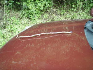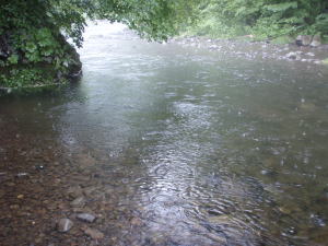 そしてしばらくするとA10サンダーボルトの銃撃もかくや、と思わせるような強烈な雨となった。ドライフライが自然にウェットフライに変わってしまう。しかも水かさが増えてきたようである。この川で鉄砲水によって死ぬことはないと思われるが、空は真っ暗になるし、とっても不穏なので、かさかさと這いまわって川から上がって車に戻る。